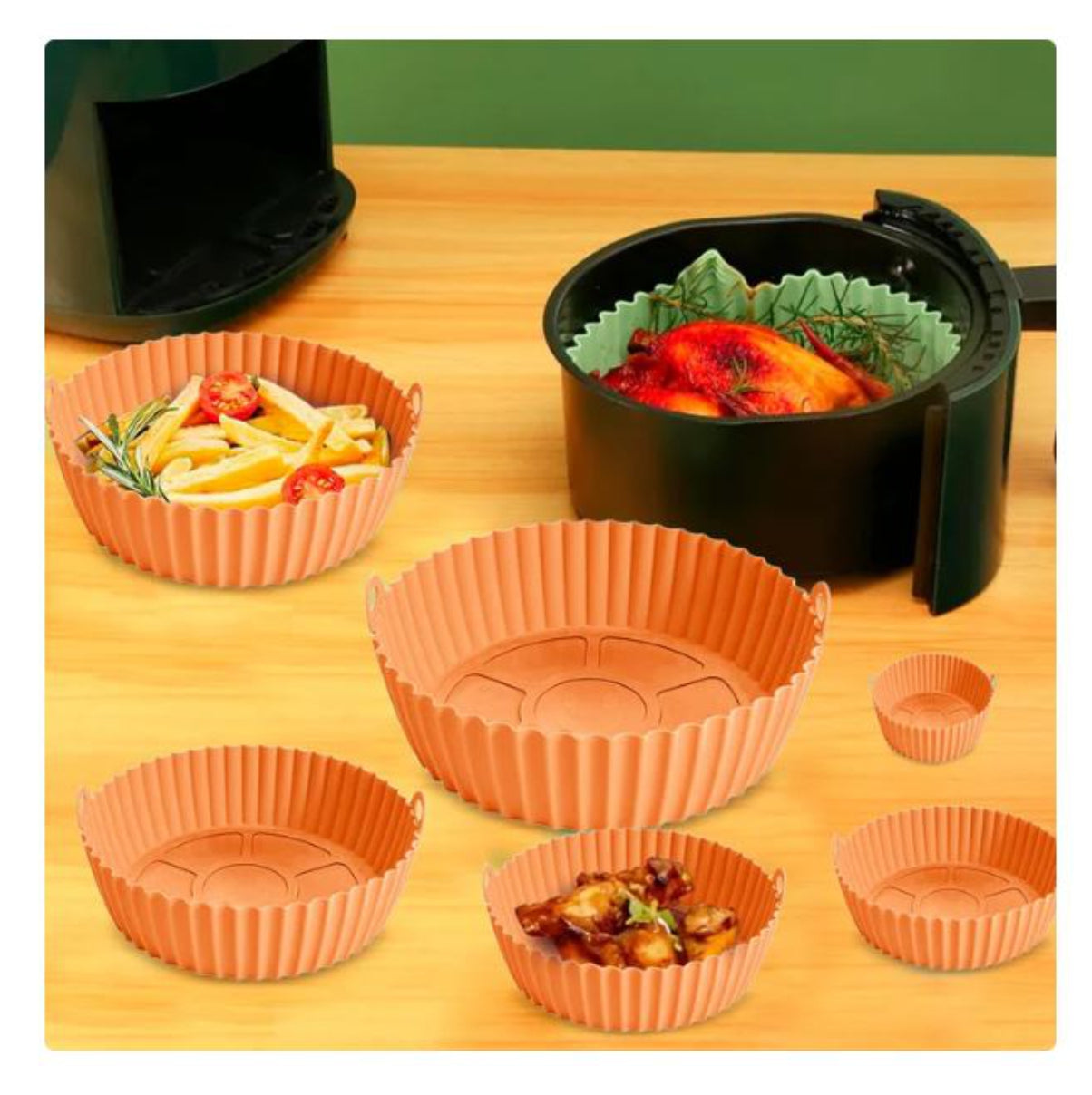 Molde de silicona se pueden usar repetidamente en lugar de papel pergamino inflamable y mantienen bien la comida fresca. El uso de una sartén de silicona para freidora de aire le brinda una experiencia de cocción más segura, más ecológica y mejor hecho de silicona espesada de alta calidad, resistente al calor, resistente al desgaste, antiadherente, reutilizable, no se deforma ni daña fácilmente, y puede soportar temperaturas de hasta 464 °F ( 240°C), apto para microondas, vaporeras, hornos y otros utensilios de cocina.Nuestras bandejas de silicona tienen un fondo estampado para evitar que los alimentos se peguen a ellas, a prueba de aceite y fugas, simplemente enjuague con agua corriente o lávelas en el lavavajillas, el uso de nuestras cestas de silicona para freidoras hará que la limpieza de la freidora sea más fácilCARACTERISTICAS:•Material: silicona de grado alimenticio•Resistencia a la temperatura: -40°-240°, Evitar el fuego abierto•Gramo peso: alrededor de 51 gramos•Tamaño: DiferentesCONTENIDO:1 paquete x6 Molde Silicona Freidora de AireGARANTIA: 30 días por defectos de fábrica, es decir, si el producto llegó roto o sin funcionamiento. (Recuerda procesarla debidamente por el módulo de garantías de DROPI)REQUISITOS OBLIGATORIOS:Caso de pedido ID:Guía de envió inicial:Novedad (Foto o Video donde se evidencie la novedad que indica):Estado del producto:* Debe estar en las condiciones que se recibió, con su empaque original, con las etiquetas, sellos de seguridad, y contar con todas sus partes y/o accesorios. Sin rayones ni manchas. Se recibirá únicamente en óptimas condiciones.
